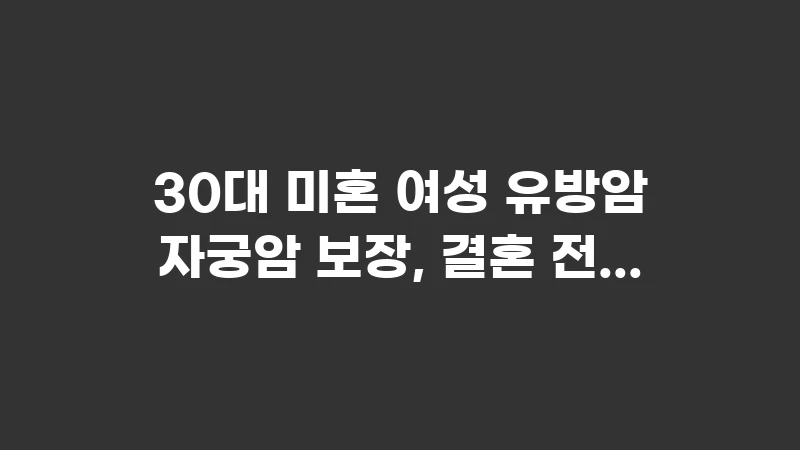 10년간의 보험 데이터를 분석한 결과, 30대 미혼 여성 유방암 자궁암 보장을 준비하는 것은 선택이 아닌 ‘필수 전략’이며, ‘지금’이 바로 그 최적의 ‘골든타임’입니다.