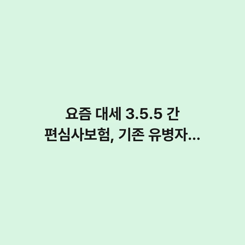 현장에서 보면, 3.5.5 보험은 특히 ‘최근’에 수술이나 입원을 하신 분들에게 새로운 기회가 되고 있습니다. 예를 들어, 1년 반 전에 용종 제거술을 받으신 분은 기존 3.2.5 보험 가입이 어려웠지만, 3.5.5 보험으로는 문제없이 가입이 가능했습니다. 다만, 입원/수술을 보는 기간이 5년으로 길기 때문에 오래된 병력까지 확인해야 하는 점을 잊지 말아야 합니다.