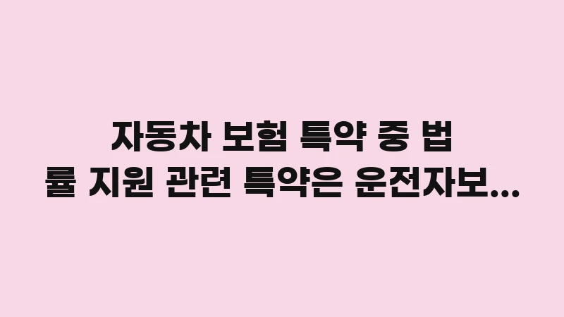 1. 자동차 보험 법률 지원 특약의 핵심 기능 및 보장 한계