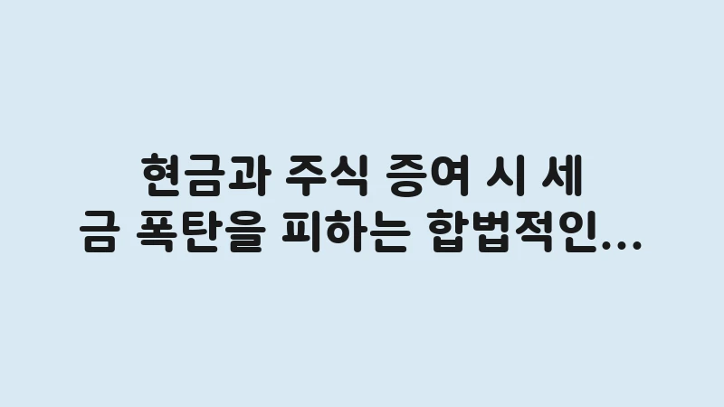 현금과 주식 증여 시 세금 폭탄을 피하는 합법적인 방법은?