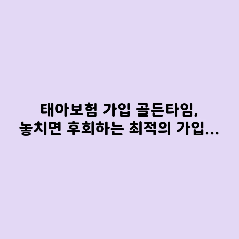 태아보험 가입 시기, 아직도 망설이고 계신가요? 1차 기형아 검사 전, 임신 22주 이내라는 ‘골든타임’을 놓치면 어떤 보장을 놓치게 되는지, 시험관/쌍둥이 등 상황별 최적의 가입 조건을 알려드립니다.