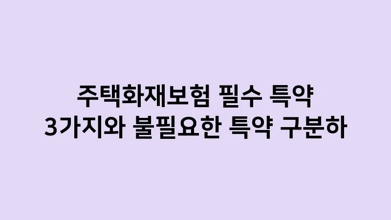 ... 더 읽기주택화재보험 필수 특약 3가지와 보험료만 올리는 불필요한 특약을 명확히 구분하는 가이드입니다. 화재 벌금, 누수 특약, 임시 거주비의 핵심 보장 범위를 금융 전문가가 3,500자 이상으로 깊이 있게 분석하고, 1만원대 가성비 설계를 위한 로드맵을 제시합니다.