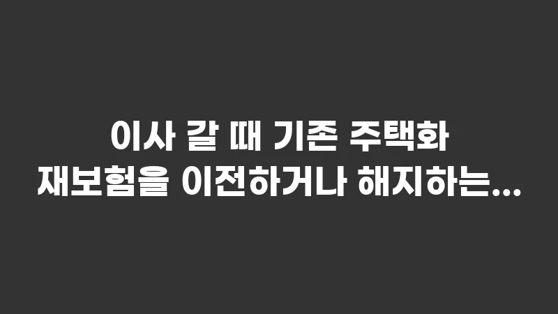 ... 더 읽기이사 갈 때 주택화재보험을 이전하거나 해지하는 가장 현명한 방법을 안내합니다. 주소 변경 절차를 놓치면 보장을 못 받는 이유와, 해지 시 손해액을 최소화하는 3가지 전문가 팁을 3,500자 이상으로 깊이 있게 다룹니다. 이사 전 반드시 확인해야 할 보험 관리 노하우를 제시합니다.