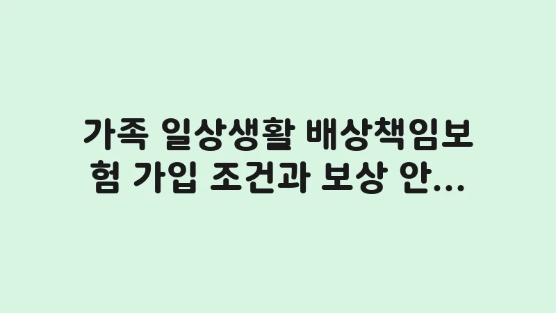 가족 일상생활 배상책임보험 가입 조건과 보상 안 되는 경우를 금융 전문가가 완벽하게 분석합니다. 자녀 사고, 반려동물 피해, 주소지 변경 등 3가지 핵심 보장/제외 사항을 3,500자 이상으로 깊이 있게 다루고, 중복 가입의 함정과 비례 보상 원리를 명확히 제시합니다.