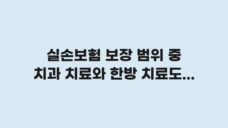 ... 더 읽기실손보험 보장 범위 중 치과 치료와 한방 치료도 포함되나요? 치과 및 한방 치료의 급여 항목, 비급여 항목 실비 청구 가능 여부와 보장 기준을 상세히 분석합니다. 보장받을 수 있는 치료 항목과 제외되는 항목을 명확히 확인하세요.