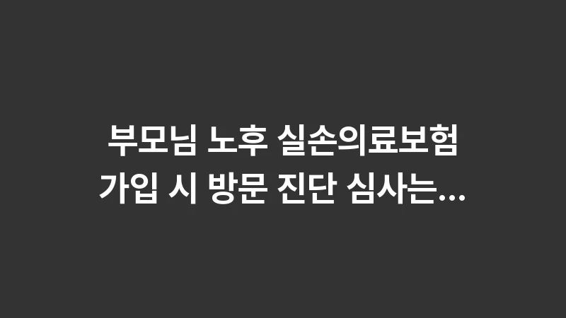 부모님 노후 실손의료보험 가입 시 방문 진단 심사는 필수인가요? 노후 실비보험의 심사 절차와 간편 고지 기준을 상세 안내하고, 방문 진단 심사를 피하는 방법과 고지 의무 위반 시의 위험성을 전문가가 제시합니다. 부모님 보험 가입 전 꼭 확인하세요.