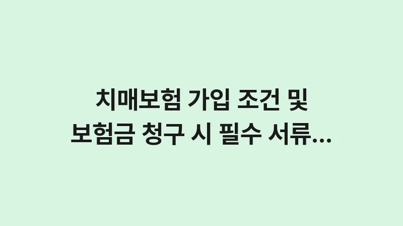 ... 더 읽기치매보험 가입 조건 및 보험금 청구 시 필수 서류에 대한 모든 것을 총정리했습니다. 일반 보험과 유병자 보험의 가입 조건 비교, 면책 및 감액 기간의 중요성, 그리고 보험금 청구 시 누락 없이 준비해야 할 3가지 필수 서류와 대리인 청구 서비스 신청 방법을 제시합니다.
