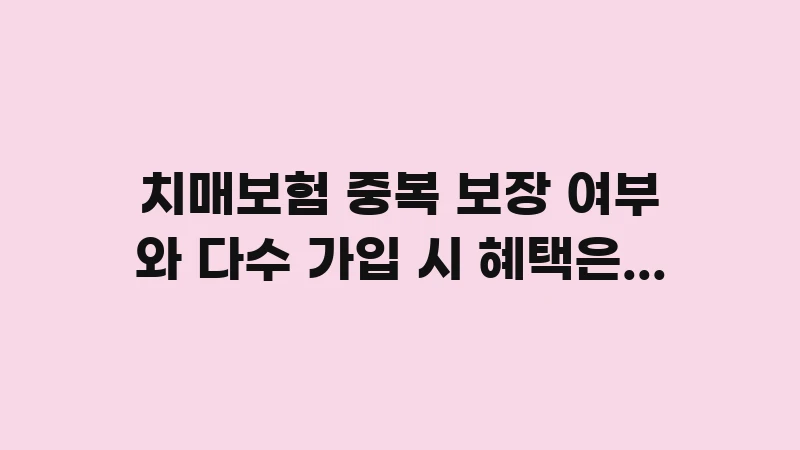 치매보험 중복 보장이 가능한지, 그리고 다수 가입 시 어떤 혜택이 있는지 궁금하다면 이 글을 읽어보세요. 치매보험이 ‘정액 보험’이므로 중복 보장이 가능하다는 명확한 사실을 설명합니다. 두 개 이상 가입 시의 장점과 보험금 지급 방식, 그리고 합리적인 중복 가입 전략까지 구체적인 데이터를 통해 상세히 분석했습니다.