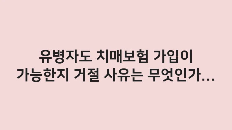 ... 더 읽기유병자도 치매보험 가입이 가능한지 궁금하다면 이 글을 확인하세요. 만성 질환(고혈압, 당뇨) 환자의 가입 조건과 거절 사유, 심사 기준을 상세히 분석했습니다. 병력 유무와 관계없이 치매 보장을 받을 수 있는 유병자 치매보험의 특징과 가입 전략, 그리고 가입 후 보험금 분쟁을 피하는 법까지 총정리했습니다.