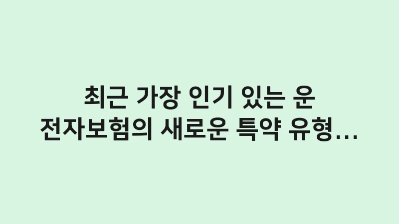 ... 더 읽기최근 가장 인기 있는 운전자보험의 새로운 특약 유형 3가지와 그 특징을 분석합니다. 법규 변화에 따른 첨단 운전자 보조 시스템(ADAS) 보장 등 미래형 보장의 핵심 기능을 제시합니다.