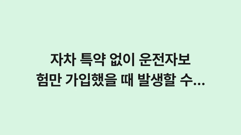 ... 더 읽기운전자보험만 가입했을 때 발생할 수 있는 잠재적 위험성을 심층 분석합니다. 자동차보험의 필수 영역인 대인/대물, 자차 특약의 부재가 가져오는 치명적인 재정적 리스크를 명확히 제시합니다.