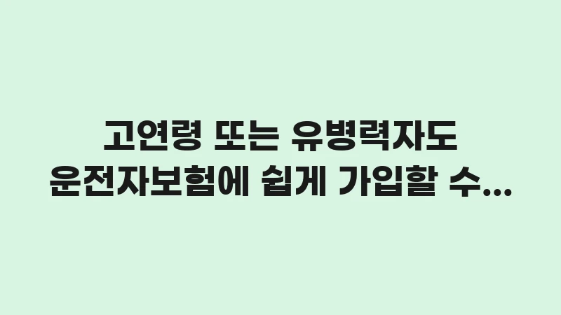... 더 읽기고연령 운전자보험 가입 노하우: 고연령 또는 유병력자가 운전자보험에 쉽게 가입할 수 있는 간편 심사 노하우와 함께, 필수 3대 보장 및 운전자 본인 상해 특약 강화 전략을 제시합니다.
