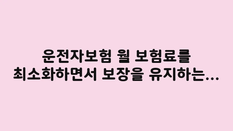 운전자보험 월 보험료를 최소화하면서 보장을 유지하는 실질적인 절약 팁이 있나요?