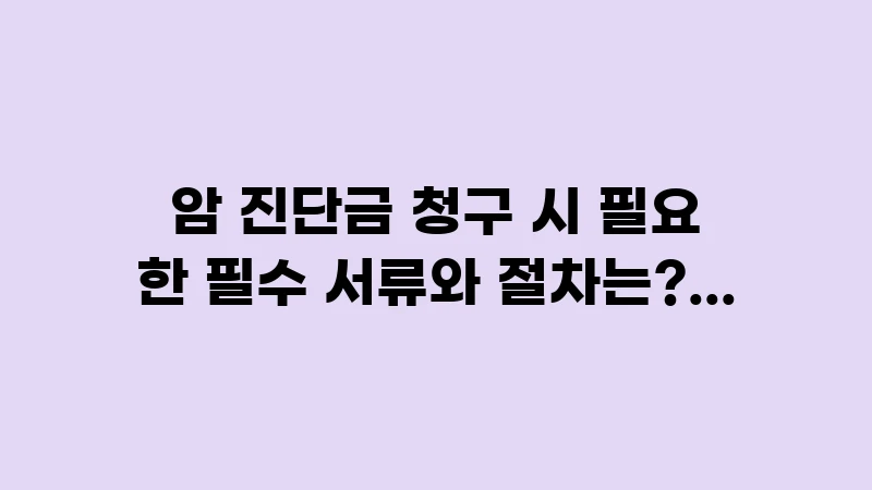 ... 더 읽기암 진단금 청구 시 필요한 필수 서류와 절차 가이드: 조직 검사 결과지, 진단서 등 핵심 서류 7가지 체크리스트와 신속한 보험금 지급을 위한 청구 절차 및 주의사항을 상세히 안내합니다.