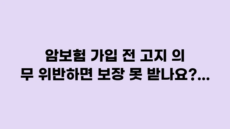 ... 더 읽기암보험 가입 전 고지 의무 위반 시 보장 불이익 분석: 고지 의무 항목 3.2.5년 기준과 위반 시 발생하는 계약 해지, 보험금 지급 거절 등 치명적인 결과 및 안전한 가입 전략을 제시합니다.