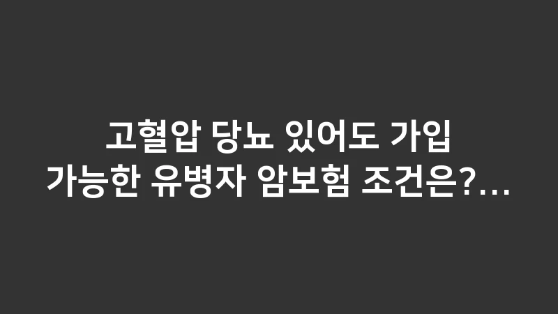 ... 더 읽기고혈압 당뇨 있어도 가입 가능한 유병자 암보험 조건 완벽 분석: 간편 심사 보험의 고지 항목(3.5.5)을 해설하고, 일반 보험 대비 보험료 할증 수준 및 보장 범위 제한 여부를 전문가가 상세히 제시합니다.