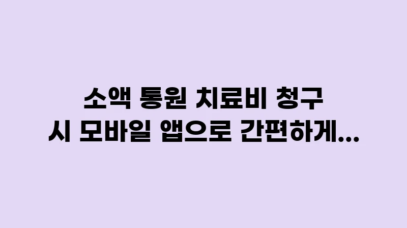 ... 더 읽기소액 통원 치료비 청구 시 모바일 앱으로 간편하게 신청하는 방법을 상세 안내합니다. 10만 원 미만 소액 실비 청구 시 필요한 서류(영수증, 세부 내역서)를 앱으로 촬영하여 5분 만에 끝내는 초간단 절차와 주의사항을 전문가가 제시합니다.