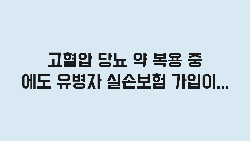 ... 더 읽기고혈압 당뇨 약 복용 중에도 유병자 실손보험 가입이 가능한가요? 유병자 실비보험의 간편 심사 기준 3가지를 상세히 분석하고, 만성질환자가 가입 시 놓치면 안 될 고지 의무와 주의사항을 전문가가 제시합니다. 의료비 부담을 줄이는 최적의 방법을 확인하세요.
