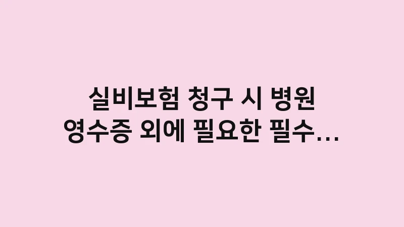 ... 더 읽기실비보험 청구 시 병원 영수증 외에 필요한 필수 서류 목록. 소액 통원부터 입원, MRI, 도수치료 등 고액 청구 시 반드시 준비해야 할 서류와 발급 시 유의사항을 전문가가 상세히 정리했습니다. 서류 미비로 지급 거절당하지 마세요.