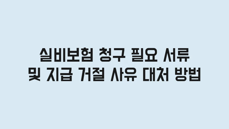 ... 더 읽기실비보험 청구 필요 서류 및 지급 거절 사유 대처 방법 총정리. 소액 청구부터 고액 비급여 청구 시 필수 서류 목록, 지급 거절이 발생하는 3대 사유와 대처 노하우를 금융 전문가가 상세히 안내합니다. 복잡한 청구 과정을 쉽게 끝내세요.