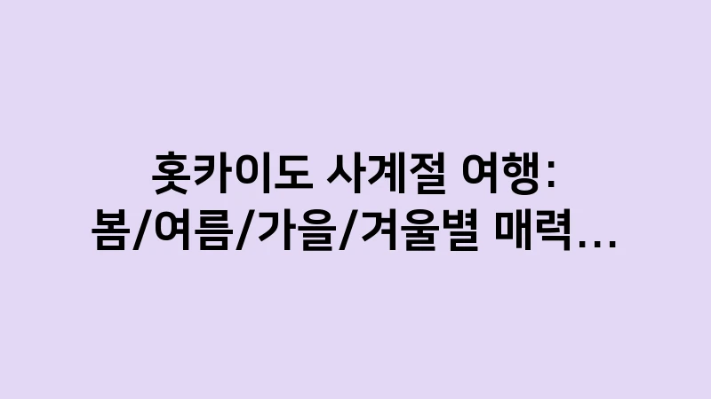이 글은 홋카이도 여행을 계획하는 당신이 계절별 특징을 정확히 파악하고, 최적의 여행 시기를 선택하며, 짐을 완벽하게 쌀 수 있도록 돕는 홋카이도 사계절 여행 마스터 가이드입니다. 이제 당신이 꿈꾸는 홋카이도의 계절을 선택하세요.
