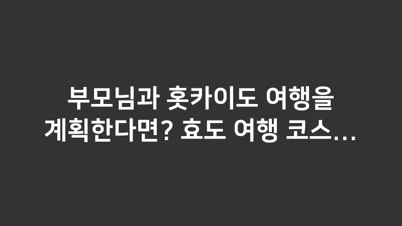 이 가이드라인을 통해 부모님의 체력과 취향을 고려한 완벽한 코스를 설계하시고, 홋카이도에서의 소중한 추억을 만드시길 바랍니다.