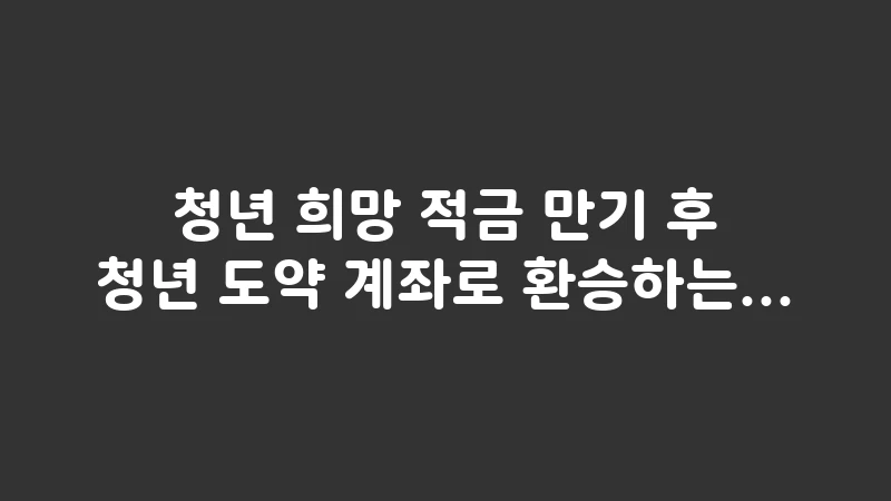 2년 동안 꾸준히 만기를 기다려온 청년 희망 적금 가입자라면, 이제 만기 수령액을 어떻게 활용해야 할지 고민이 깊을 것입니다. 이 목돈을 단순히 일반 적금에 넣어두기보다는, 정부 지원 혜택을 계속 이어받아 자산 증식의 속도를 늦추지 않는 것이 핵심입니다. 바로 청년 희망 적금 만기 후 청년 도약 계좌로 환승하는 방법을 찾는 것이 그 해답입니다.