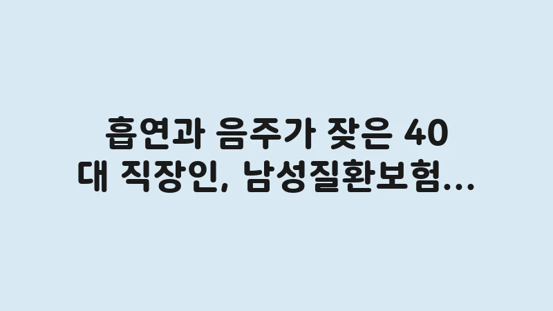 잦은 흡연과 음주 습관 때문에 남성질환보험 가입을 망설이고 계신가요? 보험사가 흡연과 음주 이력을 어떻게 평가하는지, 보험료 할증이나 부담보 같은 실제적인 불이익은 무엇인지, 그리고 이를 극복하기 위한 최적의 가입 전략까지 명확하게 알려드립니다.