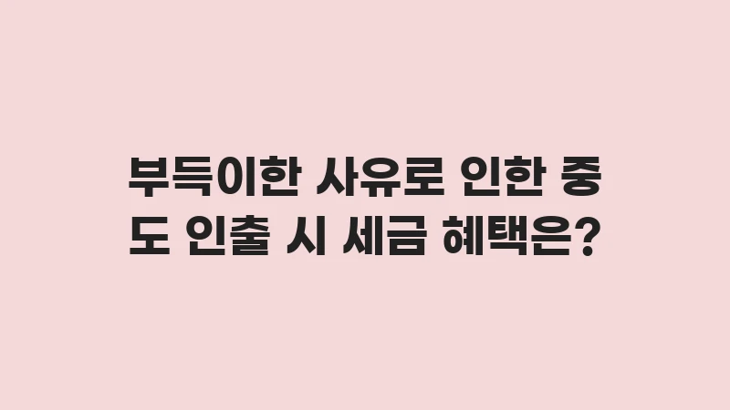 이러한 상황에 대비하여 국세청은 법에서 정한 부득이한 사유로 인한 중도 인출 시 세금 혜택을 제공합니다. 이 경우 16.5%의 기타 소득세 대신 연금 수령 시와 동일한 저율의 연금 소득세(3.3%~5.5%)가 적용되어 세금 부담을 크게 줄일 수 있습니다. 이 글은 법에서 인정하는 부득이한 사유의 종류와, 세금 혜택을 받기 위한 구체적인 절차를 상세히 안내합니다.