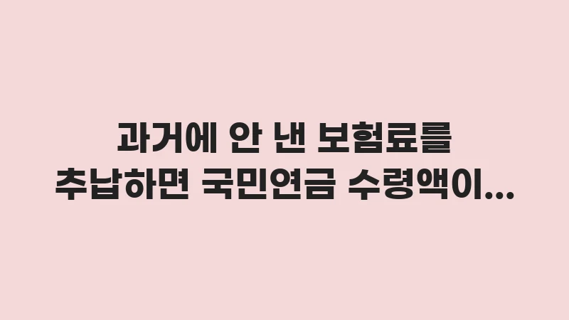 ... 더 읽기과거에 안 낸 보험료를 추납하면 국민연금 수령액이 얼마나 늘어날까요? 추후납부(추납) 제도의 활용 가치와 수령액 증액 효과를 구체적인 사례를 통해 분석합니다. 추납 신청 기간, 납부 방법, 그리고 추납을 통해 국민연금 가입 기간을 늘리는 가장 현명한 전략을 전문가가 제시해 드립니다.