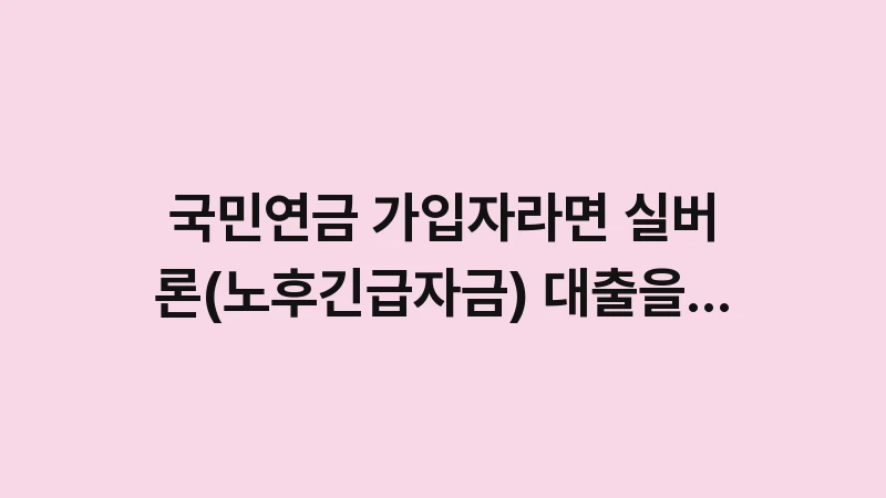 ... 더 읽기국민연금 가입자라면 실버론(노후긴급자금) 대출을 받을 수 있을까요? 국민연금 수급자나 가입자를 위한 실버론(노후긴급자금 대부)의 자격 조건, 대출 한도(최대 1천만원), 용도 제한, 그리고 신청 절차를 상세 분석합니다. 노후 긴급 자금 마련 시 실버론을 활용하는 가장 현명한 전략을 전문가가 제시합니다.