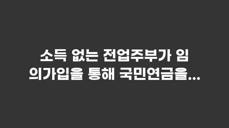소득 없는 전업주부가 임의가입을 통해 국민연금을 받는 방법은?