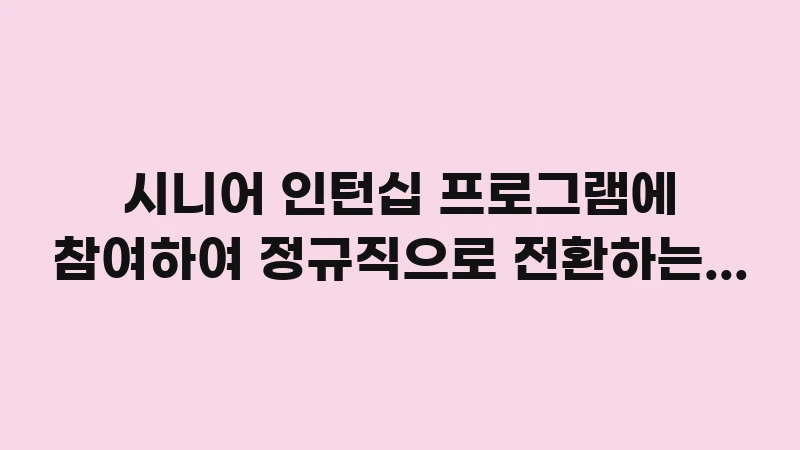 단순한 인턴으로 남지 않고 정규직으로 전환하여 시니어 복지 혜택과 더불어 안정적인 노후를 설계하기 위해, 이 가이드에 제시된 구체적인 전략을 지금 바로 실천하시길 바랍니다.