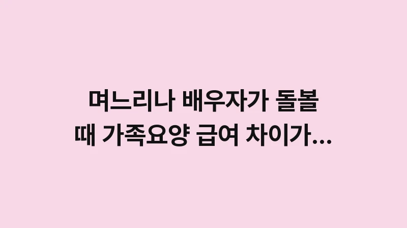 ... 더 읽기며느리나 배우자가 돌볼 때 가족요양 급여 차이 A to Z. 급여액 차이가 발생하는 핵심 조건(하루 90분 인정)과 배우자에게만 주어지는 특례 조건을 구체적으로 분석하여 현명한 돌봄을 위한 전략을 안내합니다.
