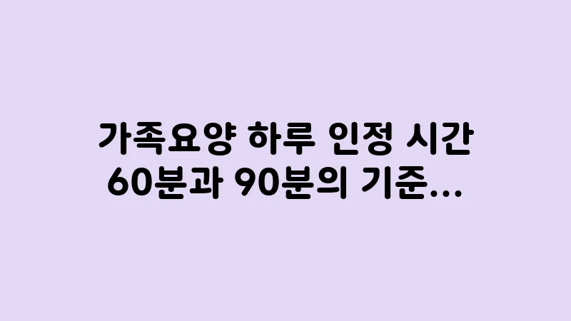 ... 더 읽기가족요양 하루 인정 시간 60분과 90분의 기준 차이 A to Z. 월 최대 급여가 2배 이상 차이 나는 90분 인정 조건(치매, 배우자 등) 및 지급 요건을 구체적인 사례로 분석합니다.