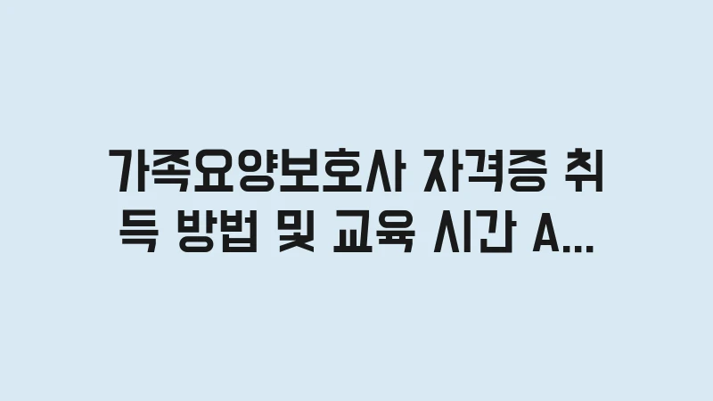 ... 더 읽기가족요양보호사 자격증 취득 방법 A to Z: 면제 조건부터 교육 시간(200시간), 비용, 시험 과목까지 상세히 정리했습니다. 가족 돌봄을 시작하려는 분들을 위한 필수 가이드입니다.