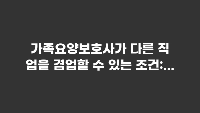 ... 더 읽기가족요양보호사가 다른 직업을 겸업할 수 있는 조건 A to Z. 직장인, 개인사업자, 프리랜서 등 겸업 가능 조건(8시간 미만 근로) 및 부정 수급을 피하는 준수 사항을 상세히 분석합니다.