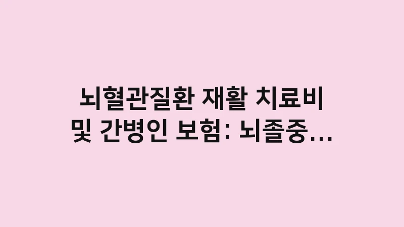 뇌졸중 재활 치료 실비 보험 보장 한계 분석: 뇌졸중 발병 후 장기 재활 치료 시 실비 보험만으로는 부족한 이유와, 이를 보완하는 뇌혈관질환 후유장해 진단비 및 간병인 특약의 필요성을 전문가가 제시합니다. 지금 바로 대비하세요.
