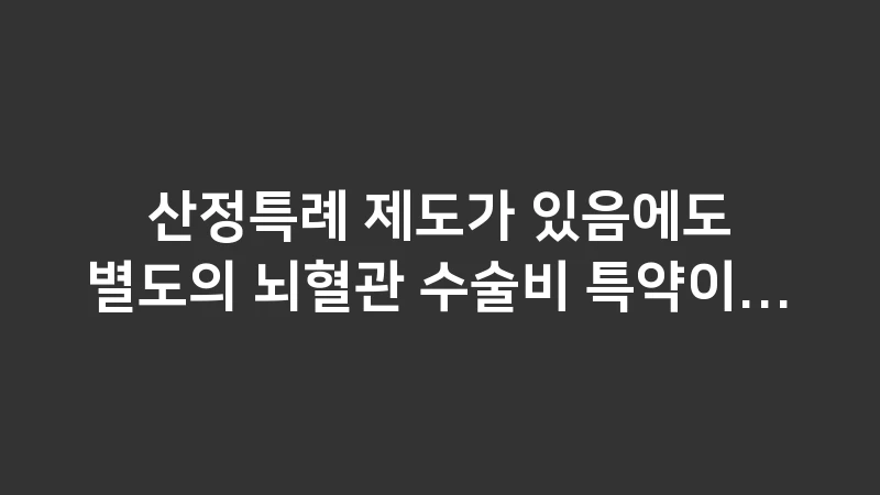... 더 읽기산정특례 제도와 뇌혈관 수술비 특약의 관계 분석: 산정특례로 본인 부담률이 낮아지더라도 별도의 뇌혈관 수술비 특약이 필요한 결정적인 이유와 비급여 항목 대비 전략을 제시합니다. 지금 바로 확인하세요.