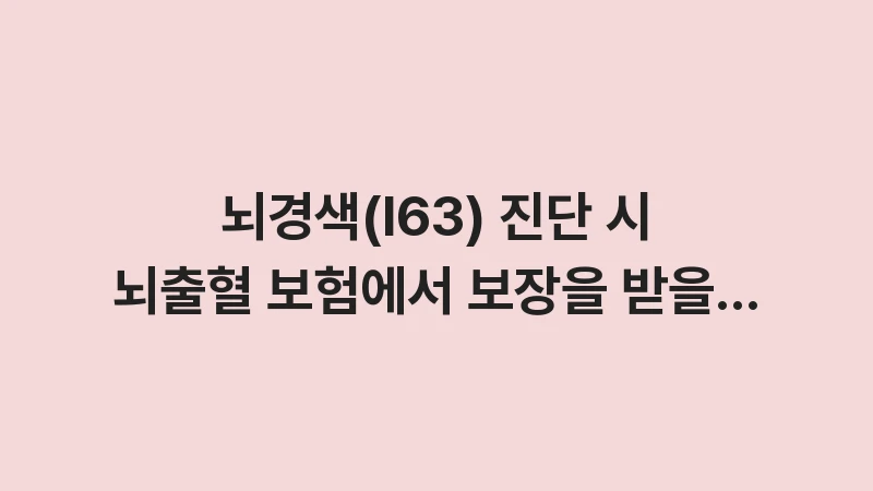 ... 더 읽기뇌경색 I63 뇌출혈 보험 보장 불가: 뇌경색(I63)이 뇌출혈 보험에서 보장되지 않는 치명적인 이유를 질병 코드별로 분석하고, 뇌경색을 대비하는 가장 완벽한 뇌혈관질환 보험 설계 가이드를 제시합니다. 지금 바로 확인하세요.