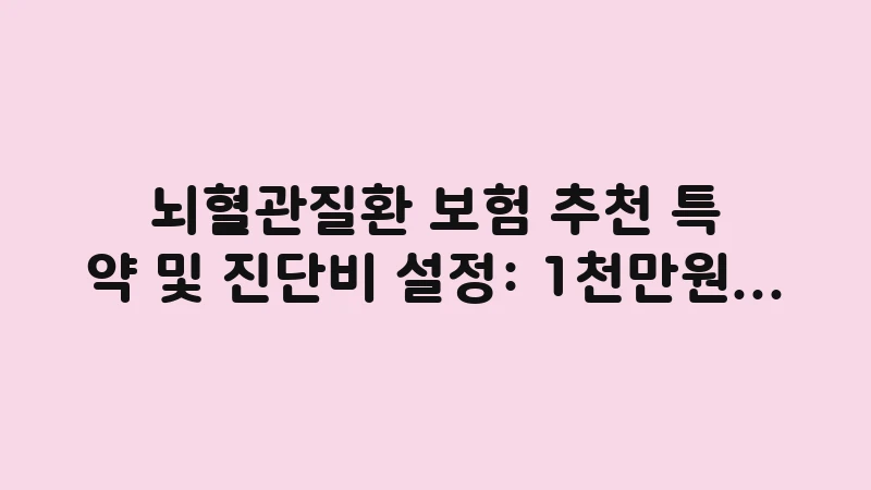 ... 더 읽기뇌혈관질환 보험 추천 특약 및 진단비 설정: 뇌혈관질환 진단비 1천만원 vs 2천만원 적정 금액 비교부터, 뇌혈관 수술비, 재활 특약 등 필수로 챙겨야 할 핵심 특약까지 전문가가 완벽하게 안내합니다.