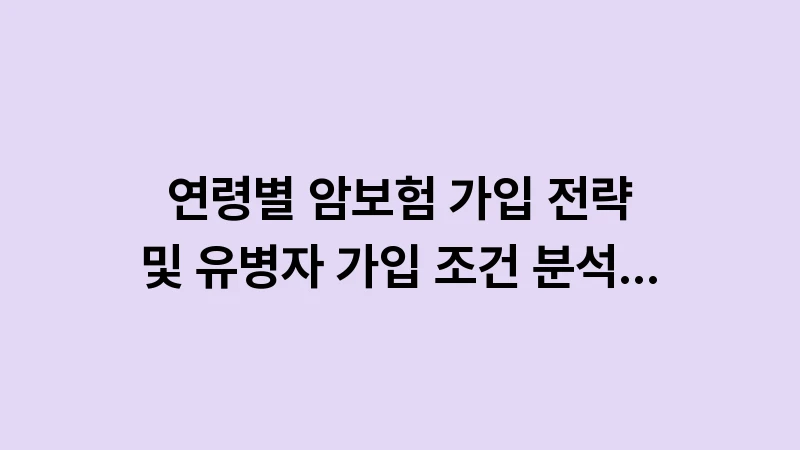 ... 더 읽기연령별 암보험 가입 전략 및 유병자 가입 조건 분석: 20대부터 60대까지 연령별 필수 진단금 액수와 갱신/비갱신 선택 기준, 고혈압 당뇨 환자를 위한 유병자 보험 가이드까지 총정리합니다.