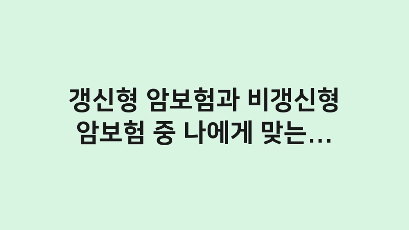 ... 더 읽기갱신형 비갱신형 암보험 선택 가이드: 30대부터 50대까지 연령별 보험료 구조와 총 납입액을 비교 분석하여 나에게 맞는 암보험을 고르는 방법을 제시합니다. 후회 없는 보험 설계를 위한 재정 분석!