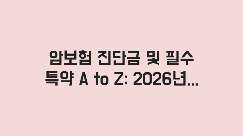 ... 더 읽기암보험 진단금 및 필수 특약 A to Z: 2026년 최신 정보를 바탕으로 암 진단비, CI보험과의 차이, 갱신/비갱신 선택, 감액 기간 등 핵심 내용을 완벽하게 정리한 총정리 가이드입니다. 4050대 가장을 위한 필수 가이드!