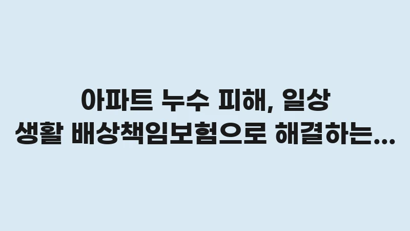 ... 더 읽기아파트 누수 피해 발생 시 일상생활 배상책임보험으로 해결하는 법을 단계별로 안내합니다. 누수 사고 시 보험 청구 방법과 절차, 그리고 아랫집과의 갈등을 최소화하며 보상받는 3가지 전문가 팁을 3,500자 이상으로 깊이 있게 분석했습니다. 지금 바로 누수 사고 대비책을 확인하세요.