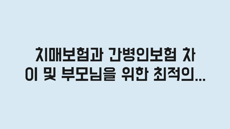 ... 더 읽기치매보험과 간병인보험 차이에 대한 명쾌한 분석으로 부모님을 위한 최적의 노후 보장 설계를 완성하세요. 진단금 vs 간병비 지원, CDR 척도 vs 장기요양등급 등 보장 기준과 자금 활용의 결정적인 차이점을 구체적인 사례를 통해 비교 총정리했습니다.