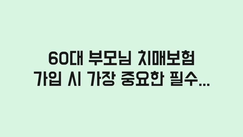 60대 부모님 치매보험 가입 시 가장 중요한 필수 특약은 무엇인가?