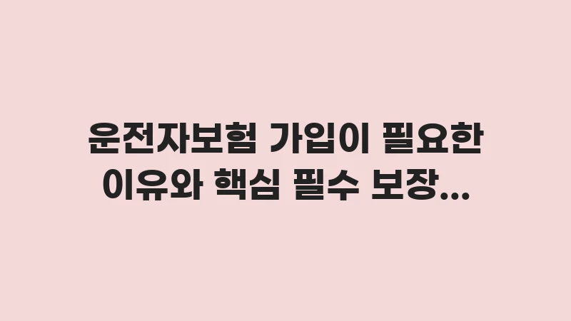고지 문구: 본 글은 2025년 12월 기준으로 작성되었으며, 공인재무설계사로서의 분석과 경험을 바탕으로 합니다. 운전자보험의 보장 내용, 보험료 및 법률 비용 한도는 각 보험사의 약관 및 정부 정책에 따라 변경될 수 있으므로, 가입 전 반드시 최신 정보를 확인하시기 바랍니다.