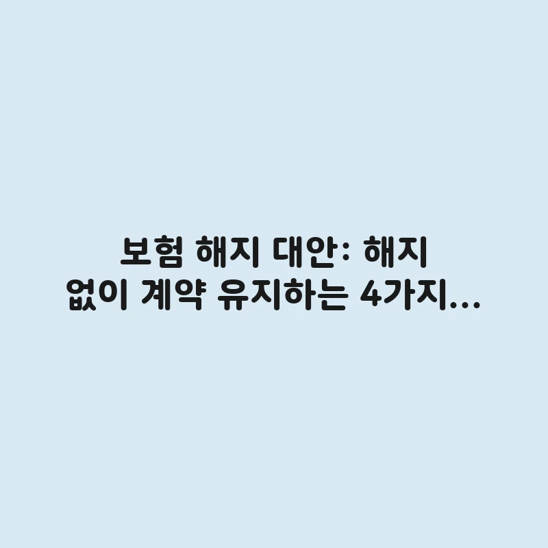 보험 해지 대안을 찾고 계신가요? 원금 손실이라는 최악의 상황을 피하고, 소중한 보장 계약을 지킬 수 있는 보험계약대출, 감액완납, 연장정기, 납입유예 등 4가지 현명한 방법을 알려드립니다.