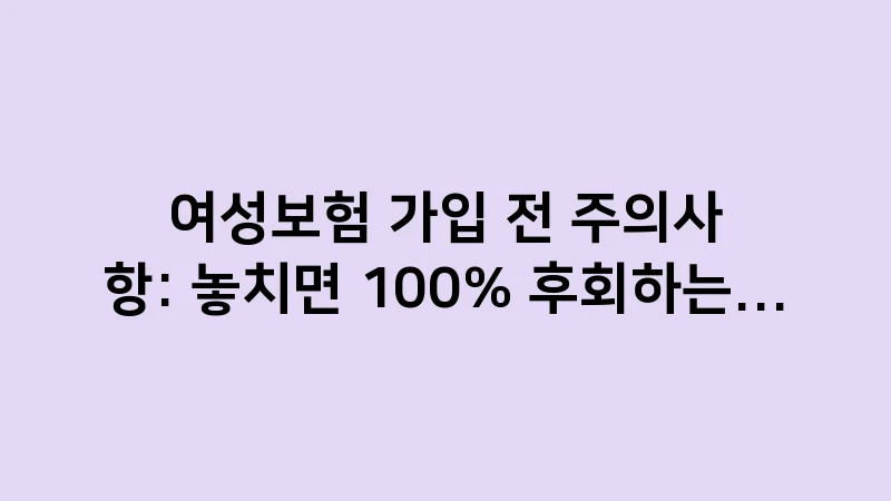 이 글에서는 수많은 가입자들이 눈물 흘리며 후회했던 ‘놓치기 쉬운 여성보험 가입 전 주의사항‘ 4가지를 명확하게 짚어드립니다. 이 4가지 허들만 제대로 넘는다면, 당신의 보험은 미래의 어떤 위험 앞에서도 가장 든든한 방패가 되어줄 것입니다.